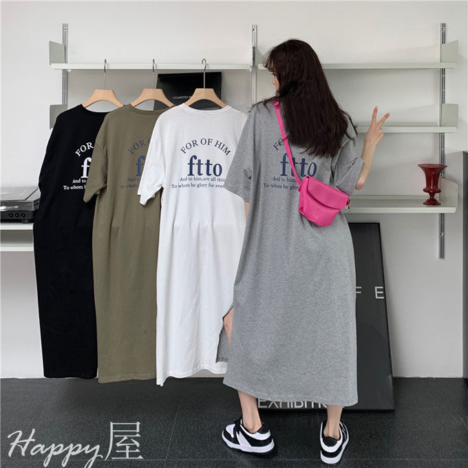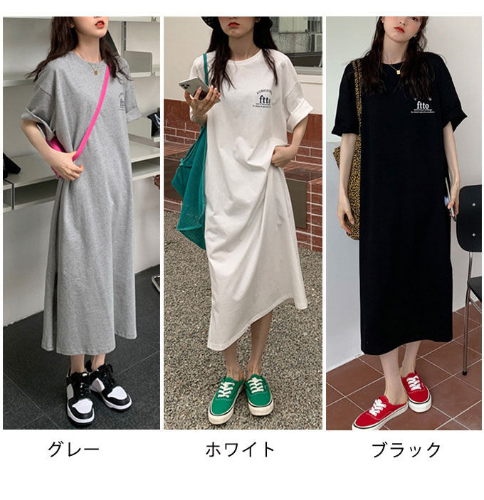 tシャツワンピース マキシワンピ レディース ゆったり 半袖 Tシャツ ロング丈 サイドスリッド 大きいサイズ トップス ゆったり おしゃれ 夏 新作 送料無料