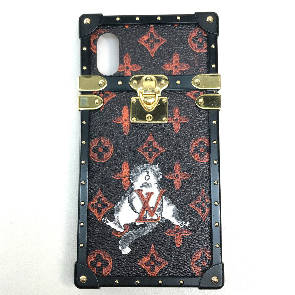 LOUIS VUITTON ルイヴィトン M63891 トランスフォームドモノグラム アイ・トランク キャットグラム iPhone X XS iPhoneケース モノグラムキャンバス レディース マロン ブラック×オレンジ 【中古】
