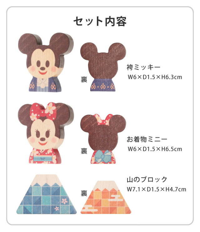 【メール便配送のみ※代引き不可】Disney KIDEA JAPAN ジャパン 袴ミッキーマウス お着物ミニーマウス 積み木 おもちゃ つみき インテリア お正月 和風 和柄 こども 子ども 子供 キッズ ベビー ディズニー 知育玩具 教育 誕生日 プレゼント ギフト キデア【36.2】