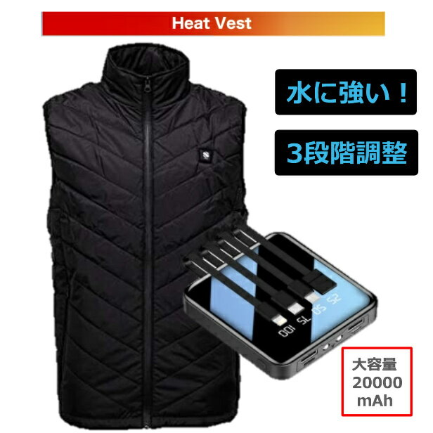 【楽天ランキング入賞】【20000mAhバッテリー付】 ヒートべスト ヒーターベスト 電熱ベスト USB HV-05 バッテリー付 20000mAh 大容量 5台同時充電可 タイプC対応 あったか メンズ レディース 加熱 ヒーター 防水 釣り キャンプ スノボ スキー 【ACアダプタープレゼント】