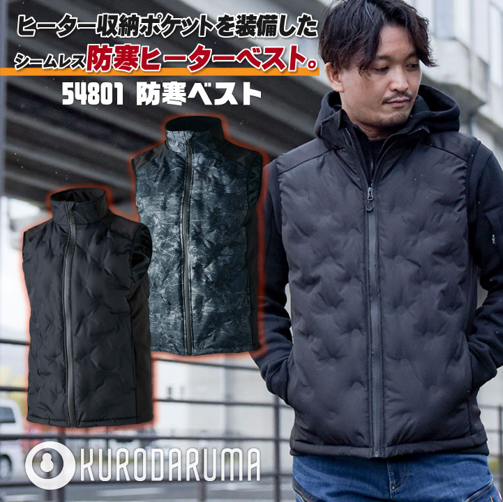 作業服 【服のみ】シームレス防寒ベスト 54801KURODARUMA クロダルマ 作業着 ワークウェア ワークユニフォーム 防寒服 防寒着 [電熱ヒーター対応] [返品・交換不可]