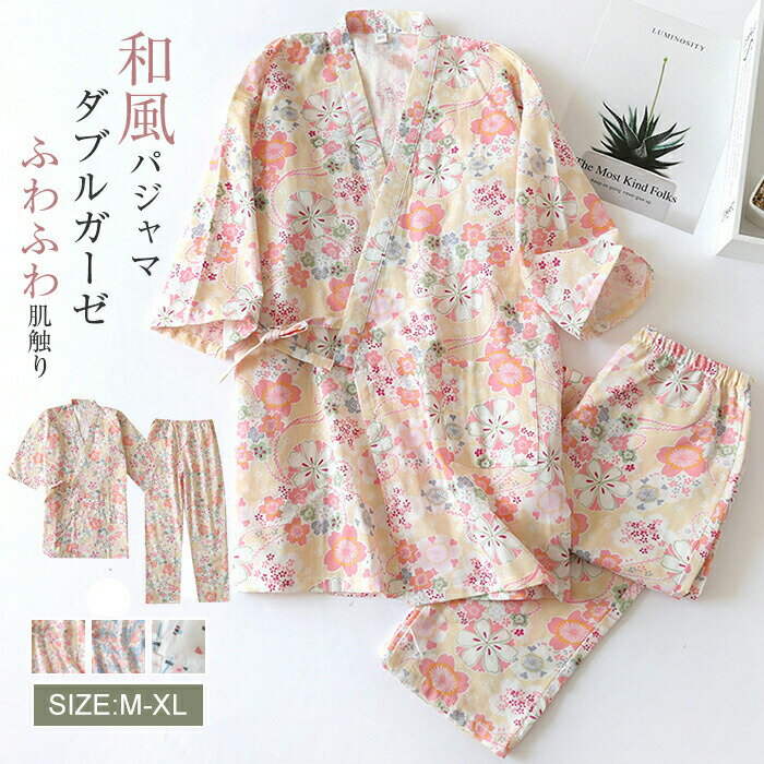 浴衣 レディース 女性用 甚平 じんべい 綿 花柄 母の日 お誕生日 旅館浴衣 温泉浴衣 旅行 花火大会 夏祭り 夕涼み会 納涼祭 パジャマ ルームウエア ダブルガーゼパジャマ 寝間着 寝巻き 部屋着 普段着 快適性 和服 和風 プレゼント ギフト M/L/XL 夏用 二点セット