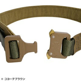素材は、独自のラミネート加工を施したコーデュラ ナイロン生地をチューブラーウェビング製法で強度を高め、ホルスターやマガジンポーチなどの重量にも耐えることができます。