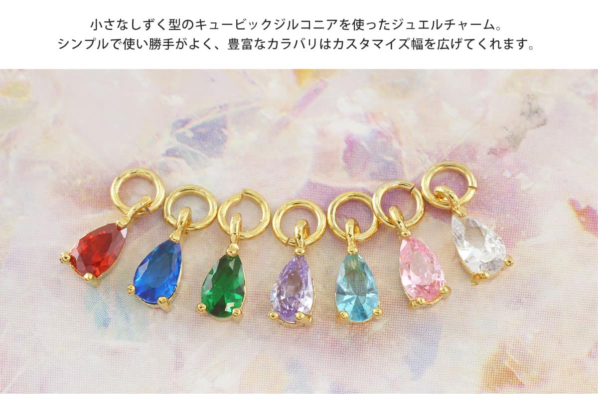 ◆オススメポイント◆ 小さなしずく型のキュービックジルコニアを 使ったジュエルチャーム。
