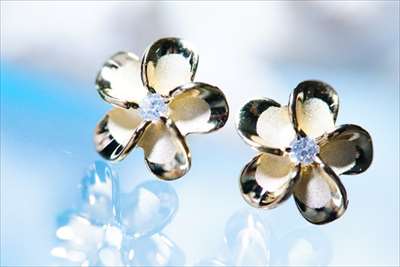 花にはクリアカラーのキュービックジルコニアが付いているので、光を受けるたびに澄み切った美しい輝きを放ち出し耳元にエレガントな印象を与えてくれます。