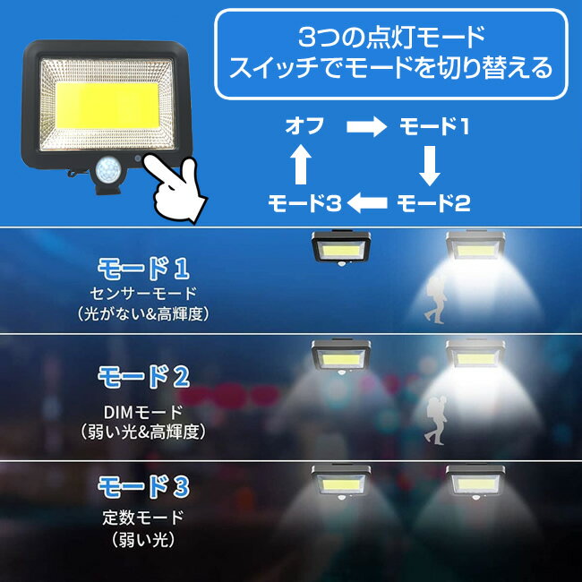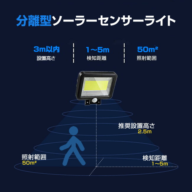 【送料無料】ソーラーライト センサーライト 分離型 屋外 100LED 防水 IP65 COB 防犯 安全 省エネ 自動点灯 3つのモード 切替 人体感知 tkn 送料無料