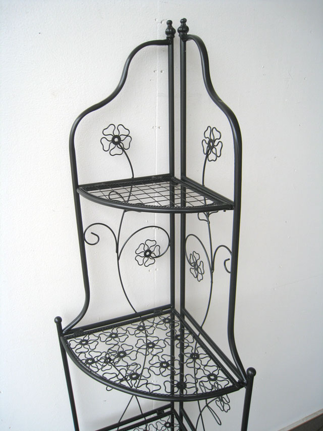 コーナーに置けるアイアンのエレガントなプランタースタンドです。