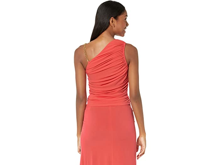 (取寄) マイケルコース レディース ピティート ルーシュド ワン ショルダー チェイン トップ MICHAEL Michael Kors women Petite Ruched One Shoulder Chain Top Sangria