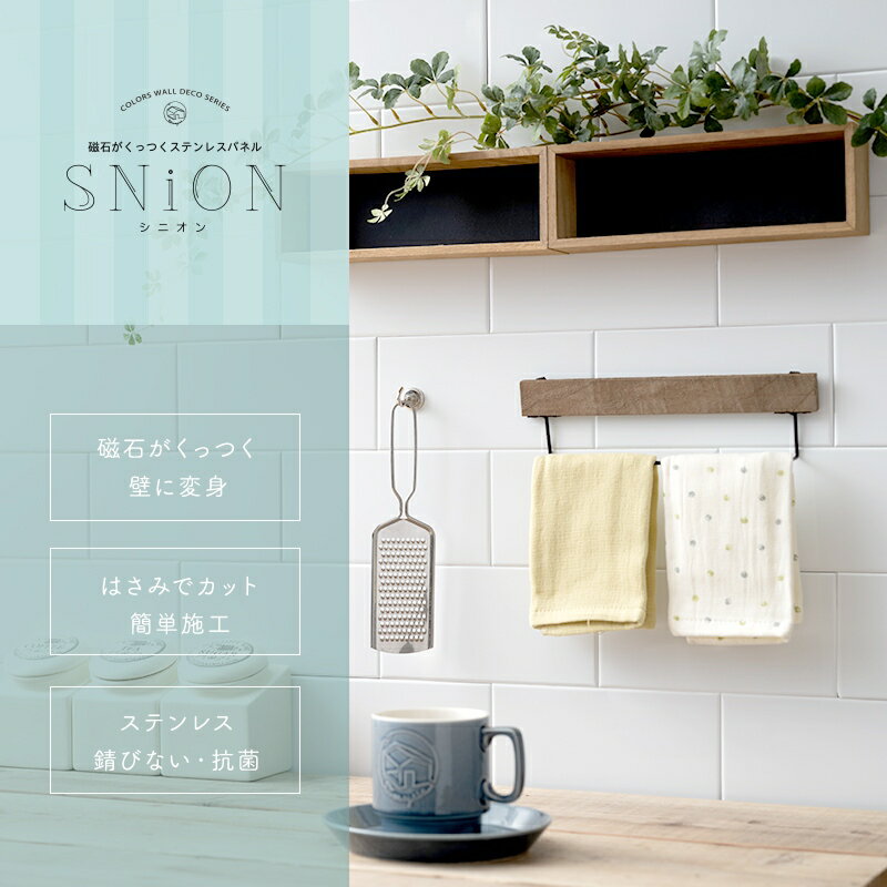 Hot Keyword---タイル ホワイト シルバー ゴールド グレー diy マグネット収納 壁 磁石がくっつくようにする ステンレス スーパースチール 壁材 錆びない さびにくい おしゃれ カッコいい 艶消し つやあり キラキラ 風水 金運 洗面所 洗面 タイル トイレ 台所 キッチン シンク廻り コンロ廻り ウォールデコ 壁面 壁面収納 壁面ディスプレイ 片付け 壁に貼る アイデア商品 防水 サブウェイタイル メトロタイル 楽天 窓際貴族 友安製作所磁石がくっつくステンレスパネル「SNiONシニオン」長方形 100×200mm 最近流行の「置かない、浮かせる収納」で注目を浴びているマグネット収納ですが、一般的な壁では使えません。
