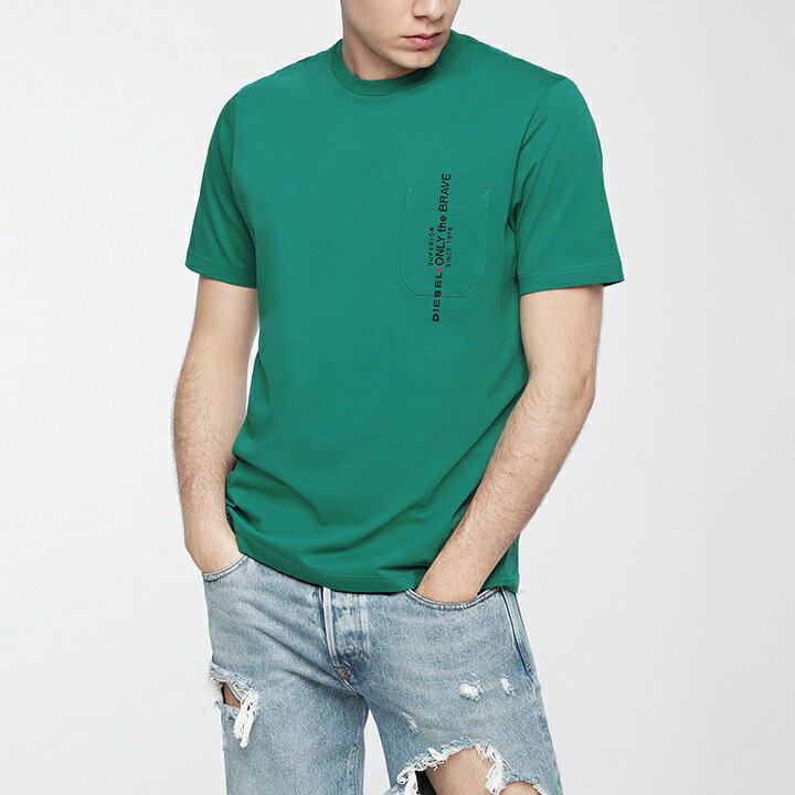 ■DIESEL ディーゼル メンズ■刺繍ロゴ 胸ポケット 半袖Tシャツ カットソー【T-JUST-POCKET】【サイズXS・S】【グリーン】die-m-t-b8-218 《メーカー希望小売価格8,580円》