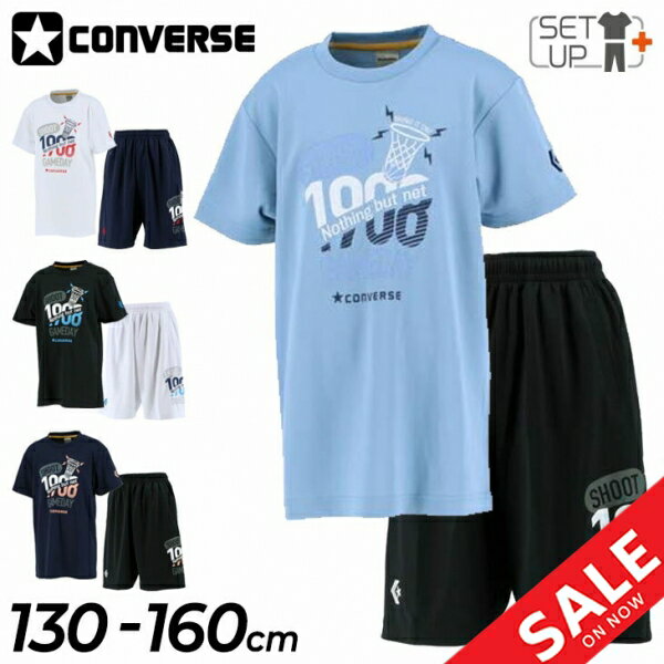 送料無料 キッズ 半袖Tシャツ ハーフパンツ 上下 130-160cm 子供服/コンバース CONVERSE ジュニア ミニバス バスケットボール スポーツウェア セットアップ 男の子 女の子 小学生 子ども 上下組/CB421353-CB421853