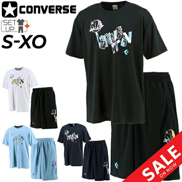 送料無料 半袖Tシャツ ハーフパンツ 上下 メンズ コンバース CONVERSE バスケットボール スポーツウェア セットアップ 吸汗速乾 男性 部活生 中高校生 男子 バスケ 上下組 2点セット 練習着/CB221370-CB221870