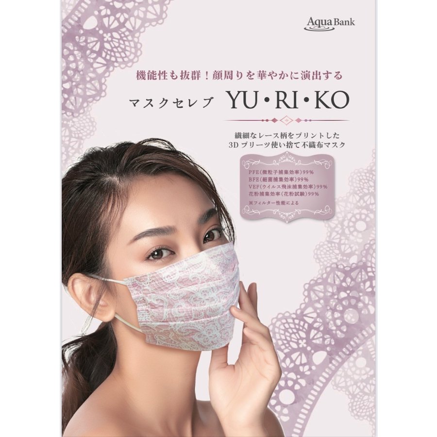 マスクセレブ yuriko YU・RI・KO ユリコ【1箱5枚入り選べる3色】優しい肌触り 不織布マスク おしゃれ 大人 アクアバンク マスク ゆりこ レース柄 セレブ マスク おしゃれ 百合子マスク 女性用
