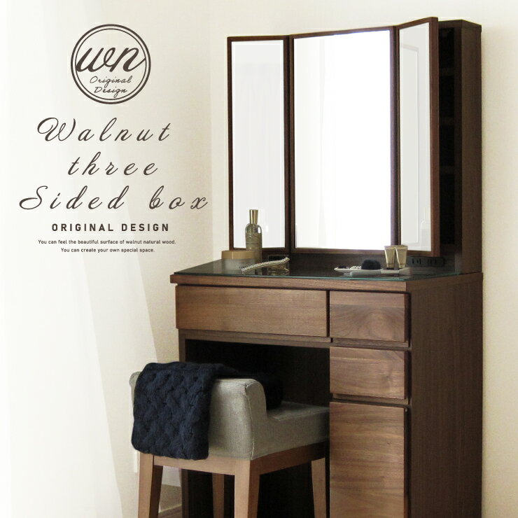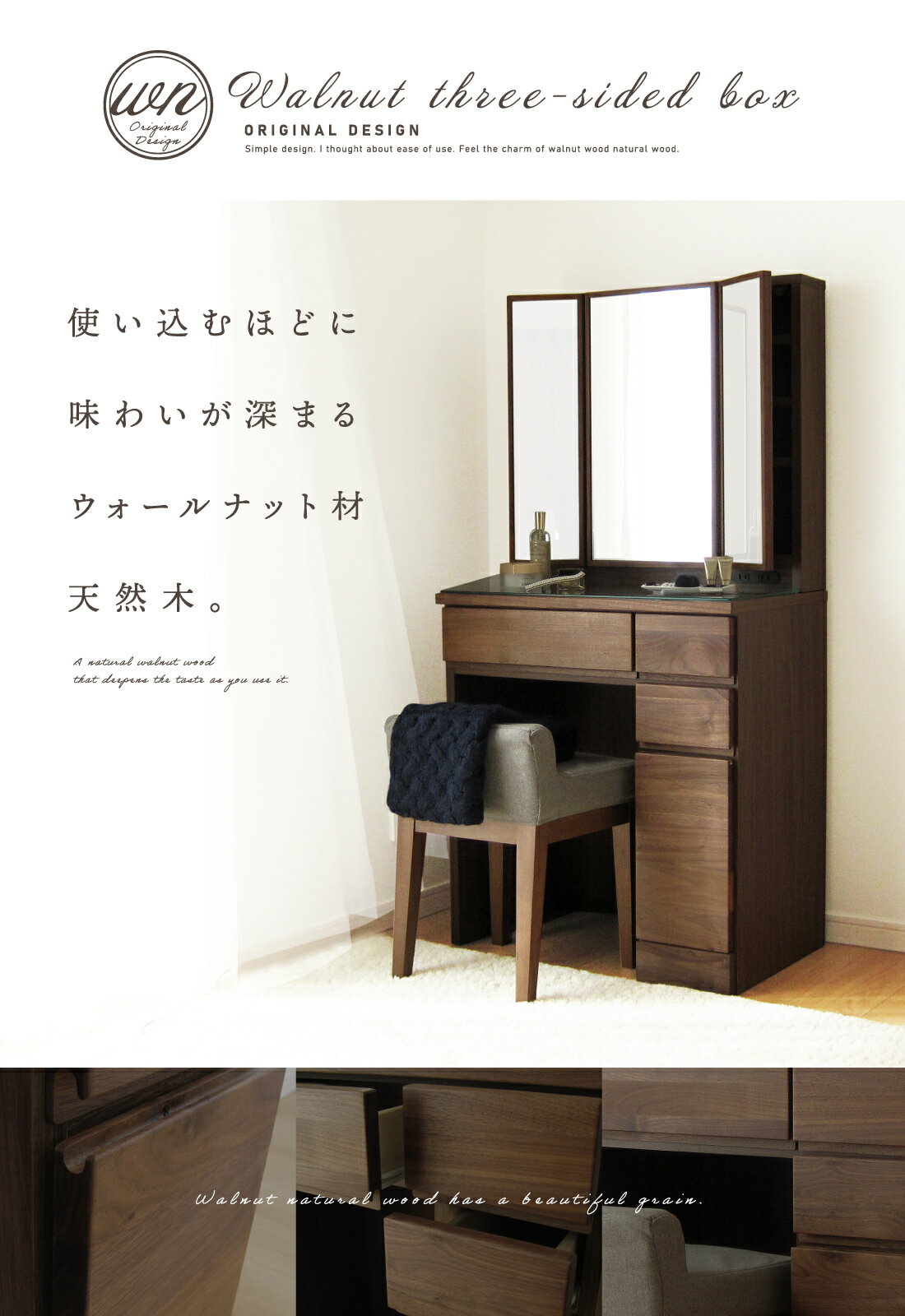 \お得な感謝DAY開催☆18日0時より/店内全商品ポイント10倍確定☆{新商品}ドレッサー 三面鏡 ウォールナット スツール付 椅子付 おしゃれ 可愛い 完成品 ブラウン 茶 鏡台 デスク 人気 かわいい 収納 北欧 送料無料 開梱設置無料