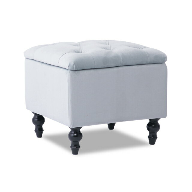 メゾンドシェリー アンティーク イス スツール スクエア オットマン 角型 チェア 椅子 いす 1人掛け ベンチ 収納付き アンティーク調家具 ライトブルー 水色 ベロア調 ロココ調 ロマンチック おしゃれ フレンチ 輸入家具 シャビーシック インテリア ロココ調家具 HN-150CC22
